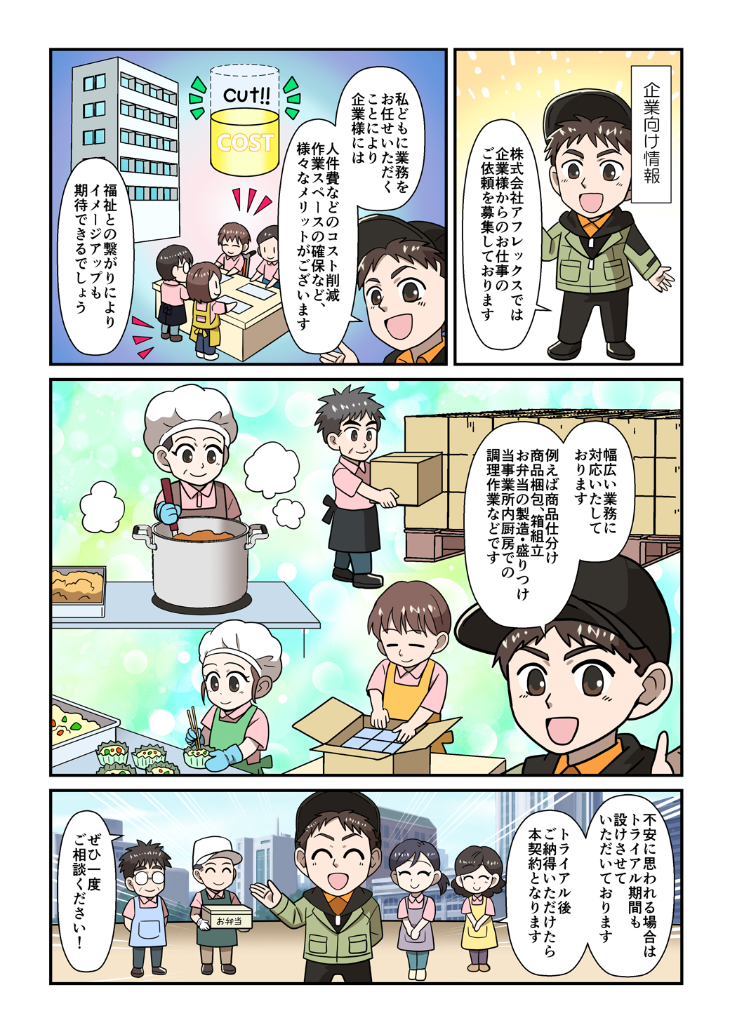 > 事業所案内 > マンガで分かる株式会社アフレックス
